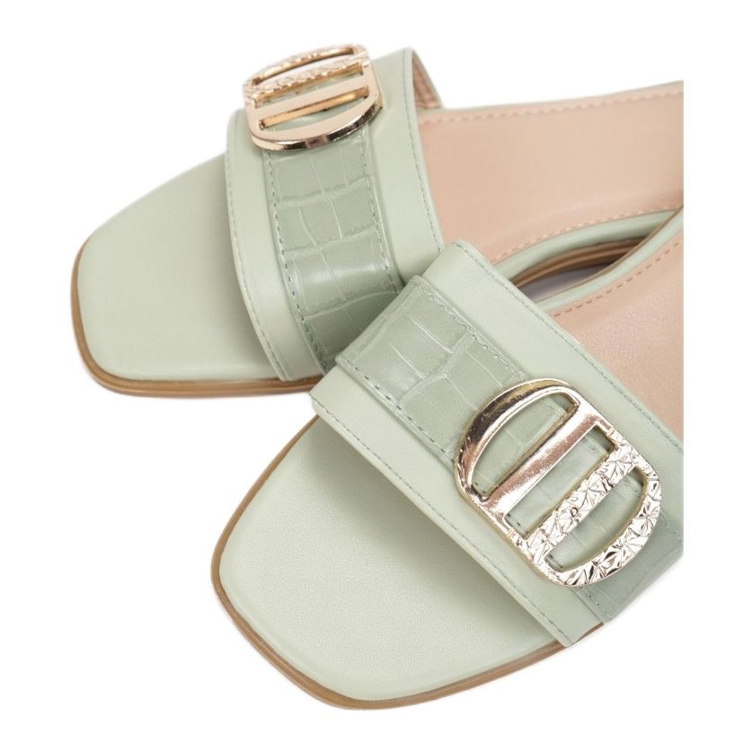 Löydä eleganssia ja mukavuutta Vices 12C-61 vihreissä varvastossoissa. Nämä muodikkaat litteät varvastossut sopivat täydellisesti jokapäiväiseen käyttöön ja lisäävät tyyliisi ainutlaatuista luonnetta. Siisti, neliömäinen, avoin varvas ja leveä hihna sormien ympärillä koristeellisella krokotiilin ihoa jäljittelevällä yksityiskohdalla soljella on täydellinen yhdistelmä estetiikkaa ja toimivuutta.