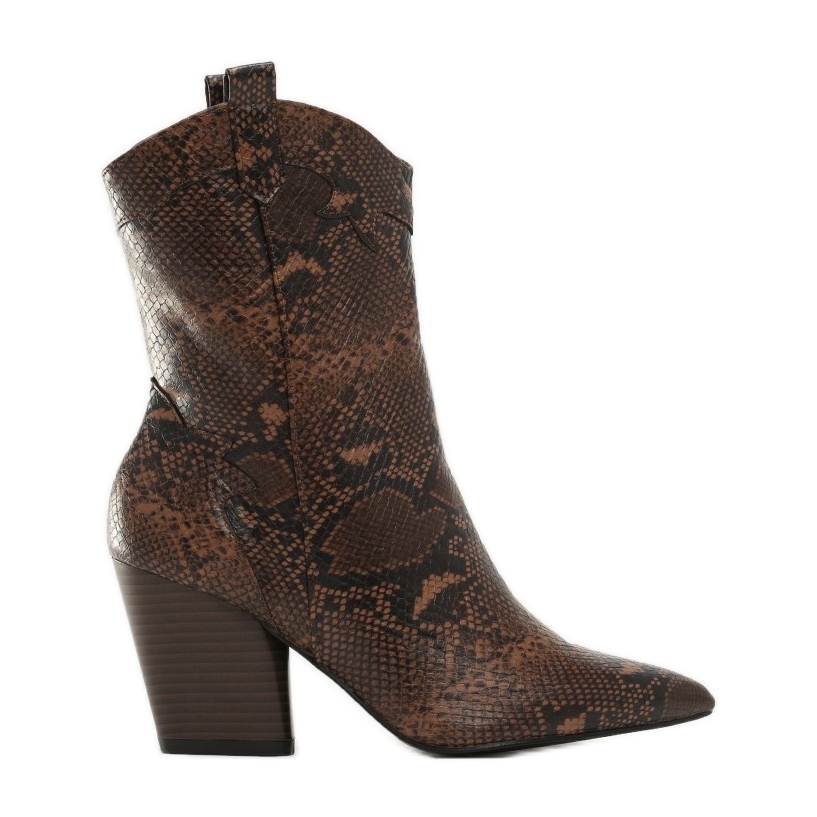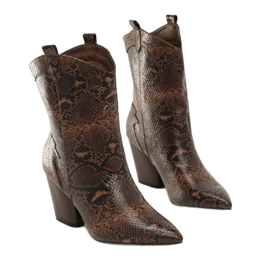 Käärmeen ihoa jäljittelevästä laadukkaasta ekonahasta valmistetut saappaat on varustettu eläinkuviolla, joka lisää luonnetta mihin tahansa tyyliin. Kengän sisäpuoli on hieman eristetty tekoturkiksella, mikä takaa lämpöä kylminä päivinä. Terävä kärki ja kartiomainen kantapää, jonka korkeus on 8 cm, lisäävät hoikan vartalon, mikä tekee niistä paitsi mukavia, myös erittäin naisellisia.