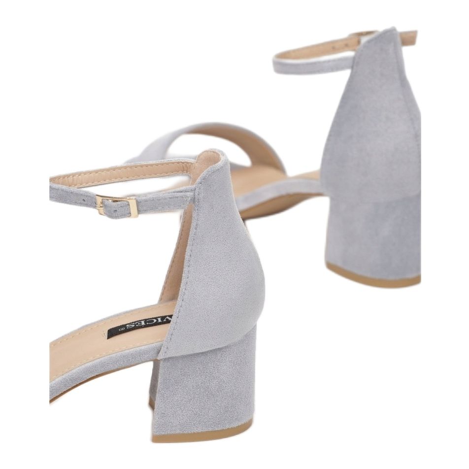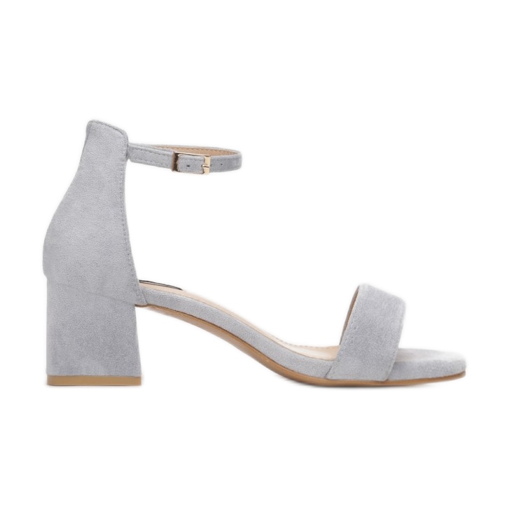 Niille on ominaista vakaa, 5 senttimetriä korkea lohkomainen kantapää, joka varmistaa mukavuuden pitkän kävelyn aikana. Pehmeästä mokkanahkasta valmistettu leveä hihna varpaiden tasolla pitää tehokkaasti jalkaa, minkä ansiosta sandaalit sopivat täydellisesti kesäpäiviin.