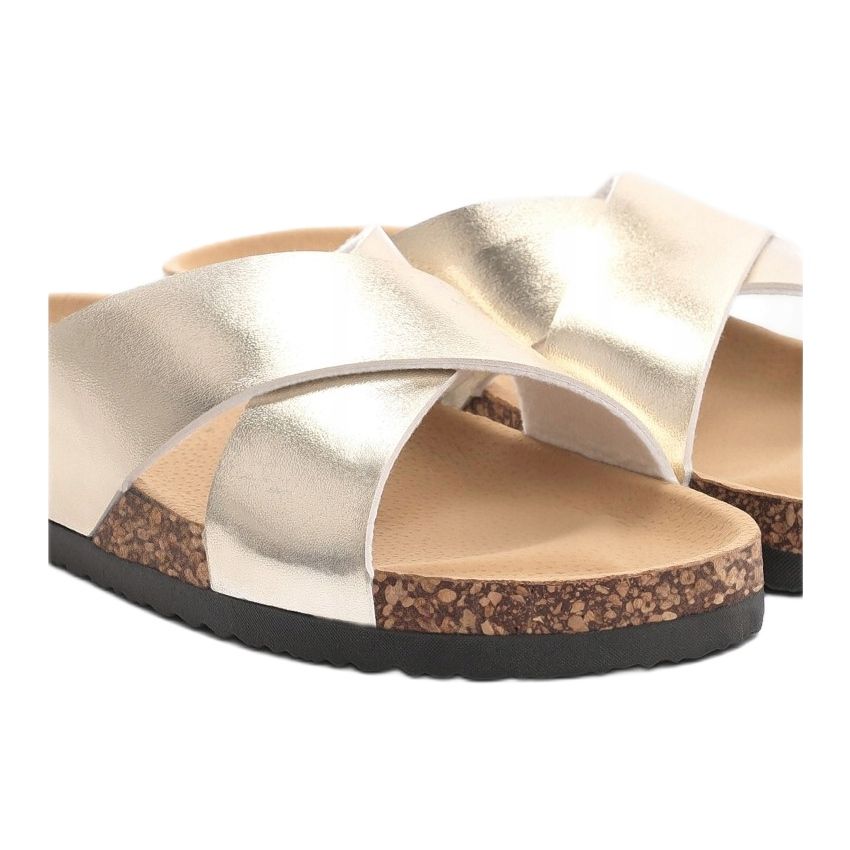 Vices 2004-60 -kultaiset varvastossut voidaan yhdistää erilaisiin kesätyyleihin - rento shortseista ilmaviin mekkoihin. Pohjan synteettinen materiaali takaa kestävyyden ja pehmeä eco-nahkapohjallinen tarjoaa riittävän iskunvaimennuksen. Valmistajan alkuperäisen laatikon kanssa nämä varvastossut ovat täydellinen valinta lämpimiin päiviin, ja niissä yhdistyy toiminnallisuus muodikkaan ilmeen kanssa.