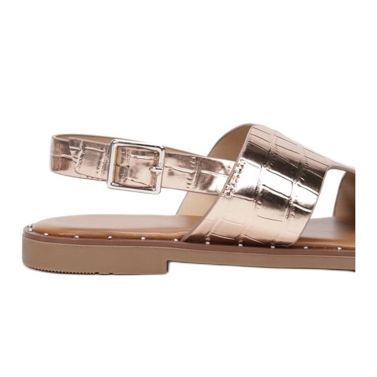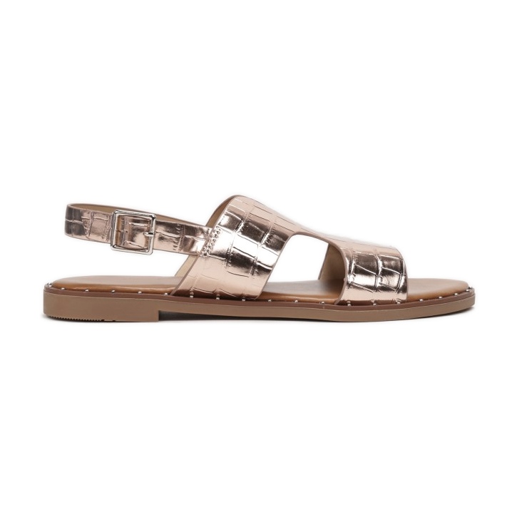 Vices 2016-6-449 sandaalit samppanjan sävyssä ovat täydellinen valinta naisille, jotka arvostavat eleganssia yhdistettynä mukavuuteen. Nämä klassiset tasapohjaiset sandaalit erottuvat erinomaisesta työstyksestä ja modernista muotoilusta. Ekonahasta valmistettu päällinen on koristeltu vaikuttavalla krokotiilinahkaa jäljittelevällä kohokuviolla, joka lisää ainutlaatuista luonnetta.