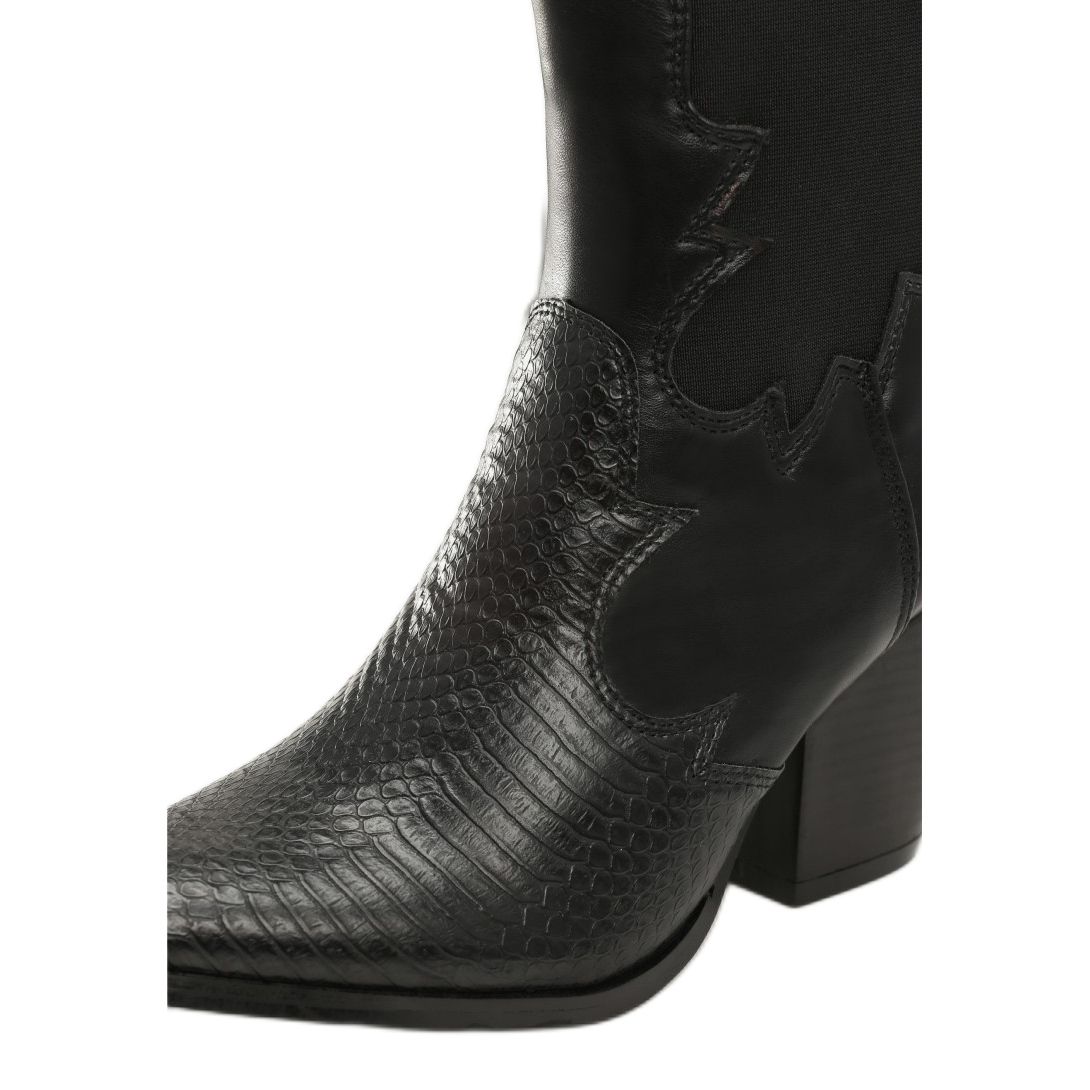 Vices cowboy -saappaat erottuu 8 cm korkeasta kartiomaisesta kantapäästä, joka lisää hienovaraista eleganssia ja varmistaa samalla vakauden. Terävä kärki korostaa niiden alkuperäistä muotoa ja tekee niistä täydellisen täydennyksen sekä arkeen että hienostuneempiin tyyleihin. Valmistettu korkealaatuisesta ekonahasta, ne eivät ole vain visuaalisesti houkuttelevia, vaan myös ympäristöystävällisiä.