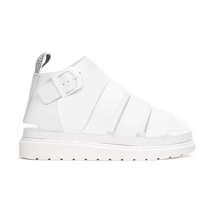 Tämä malli on kiinnitetty soljella nilkan korkeudelta, mikä varmistaa tukevan pidon ja vakauden käytössä. Avoimet varpaat ja pyöreä kärki tekevät sandaaleista paitsi tyylikkäitä myös erittäin mukavia. Lisäetuna on sisäänrakennettu kantapää, jossa on hienovarainen halkio alaosassa ja käytännöllinen kahva yläosassa, mikä helpottaa kenkien pukemista ja riisumista.