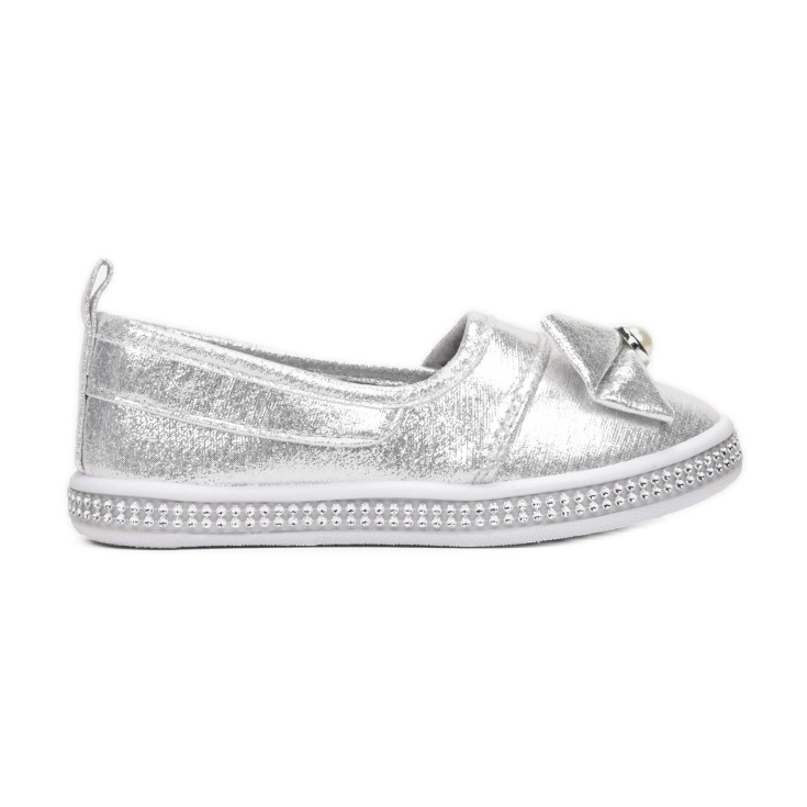 Vices tennareille on ominaista käytännöllinen slip-on-kiinnitys ja leveä rusetti, jonka edessä on viehättävä helmi, joka lisää ainutlaatuista tyyliä. Pyöreä kärki varmistaa käyttömukavuuden, ja kiiltävä tekstiilimateriaali tekee kengistä paitsi esteettiset myös kestävät. Tyylikäs reunus päällisen ympärillä ja sileä lenkki kantapäässä lisäävät makua ja laatua kokonaisuuteen.