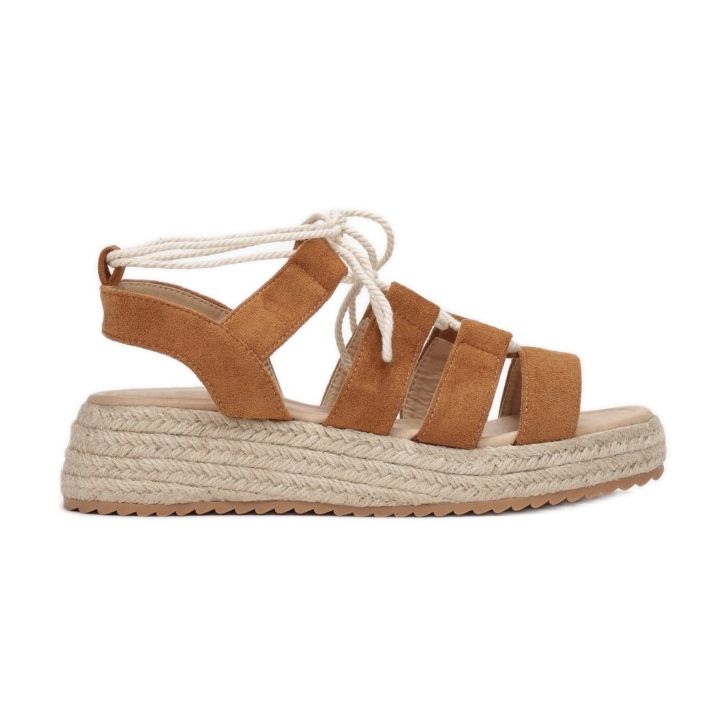 Löydä mukavuus ja tyyli kesäksi ruskeilla Vices 77-267-68 -sandaaleilla. Nämä ainutlaatuiset espadrillit on asennettu 5 cm korkealle alustalle, ja ne on päällystetty luonnollisella juuttipunoksella, mikä antaa niille hienovaraisen, boho-luonteen. Niiden tyylikäs muotoilu avoimilla varpailla ja kantapäällä tekee niistä ihanteellisen valinnan lämpimiin päiviin.