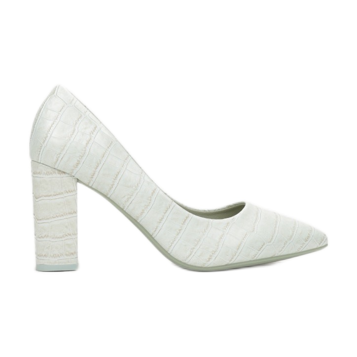 Vakaalle 8,5 cm korkealle kantapäälle sijoitetut pumput eivät vain pidennä jalkojasi, vaan lisäävät myös itseluottamusta. Mielenkiintoinen aksentti on krokotiilinahkainen kohokuviointi, joka antaa jalkineille alkuperäisen luonteen - sekä ulkopinnassa että kantapäässä.