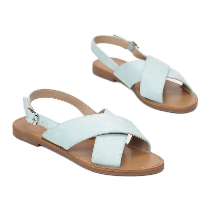 Sandaalit on varustettu solkikiinnikkeellä korkealla nilkan yläpuolella, mikä mahdollistaa täydellisen istuvuuden jalkaan ja varmistaa käyttömukavuuden. Avoimet varpaat ja kantapää antavat heille keveyttä, ja pyöristetty varvas korostaa entisestään niiden eleganttia luonnetta. Ekologisesta mokkanahkasta valmistetut ristikkäiset olkaimet takaavat muodikkaan ulkonäön, mutta myös riittävän tuen jalalle.