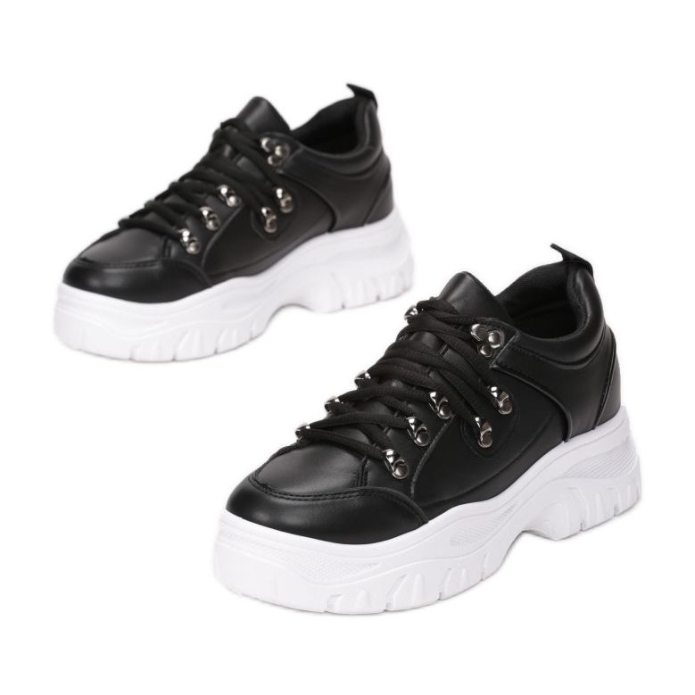 Mustat Vices 8547-38 -lenkkarit ovat ainutlaatuinen malli, jossa yhdistyvät moderni muotoilu ja käyttömukavuus. Niille on ominaista epäsäännöllinen, paksu pohja, jossa on hienovarainen kohokuviointi, mikä antaa niille alkuperäisen luonteen. Nilkan yläpuolella ulottuva yläosa, jossa on käytännölliset tikkaukset ja pyöreä kärki, takaa paitsi tyylikkään ulkonäön myös käyttömukavuuden.