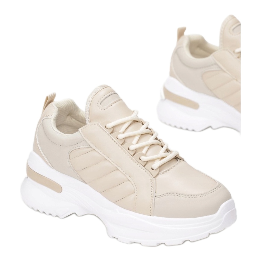 Esittelemme Vices 8554-42 -lenkkarit elegantissa beigen sävyssä - täydelliset naisille, jotka arvostavat tyylin ja mukavuuden yhdistelmää. Nämä modernisti muotoillut matalat urheilukengät herättävät huomion pyöristetyllä kärjellä ja ainutlaatuisella leikkauksella keskellä, mikä antaa niille erottuvan ilmeen.