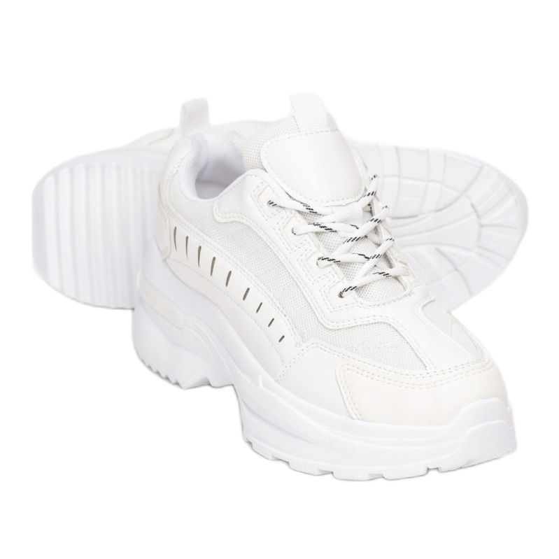 Vices 8555-71-valkoiset tennarit ovat loistava valinta naisille, jotka arvostavat paitsi muodikasta ulkoasua myös käyttömukavuutta. Nämä valkoiset nauhakengät, joissa on paksu, epäsäännöllinen pohja ja erimuotoinen kulutuspinta, sopivat täydellisesti niin arkeen kuin fyysiseen toimintaan.