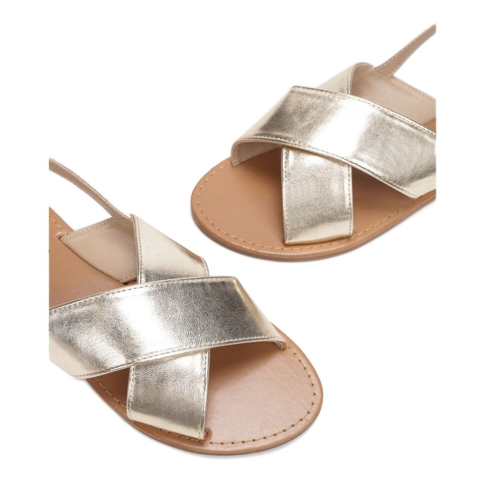 Jalkaa tukevat leveät ristikkäiset olkaimet, jotka varmistavat vakauden ja käyttömukavuuden, ja avoin kantapää lisää sandaaleihin keveyttä. Kiinnitys ohuella hihnalla, jossa on solki nilkassa, mahdollistaa täydellisen säädön yksilöllisiin tarpeisiin, mikä tekee sandaaleista käytännöllisiä ja helppoja pukea.