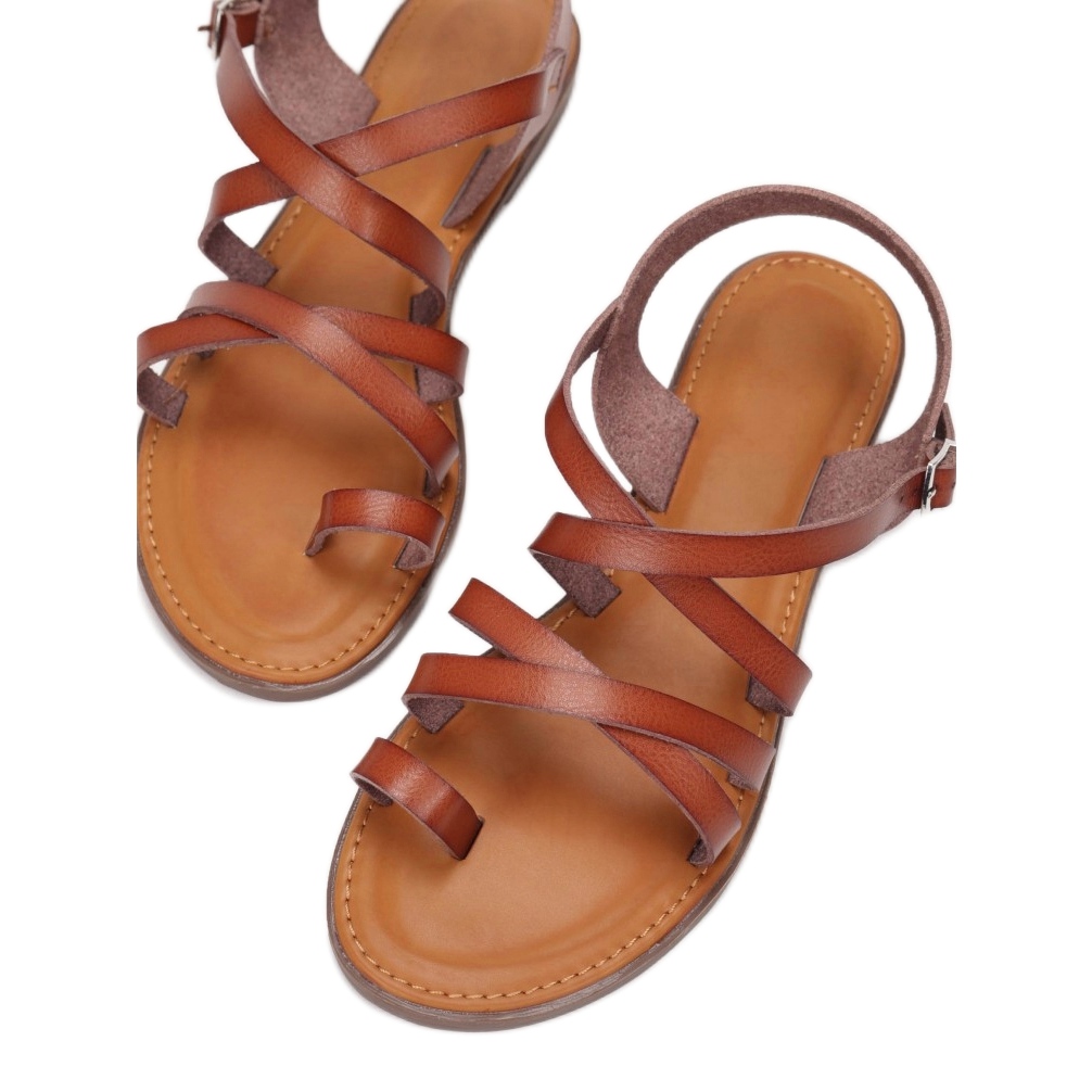 Isovarpaan ympärillä on käytännöllinen lenkki, joka vakauttaa jalkaa ja lisää käyttömukavuutta. Sandaalit on valmistettu korkealaatuisesta ekonahasta, mikä tekee niistä sekä ympäristöystävällisiä että helppohoitoisia. Synteettistä materiaalia oleva pohja takaa kestävyyden ja joustavuuden, ja 1,0 cm litteä kantapää takaa koko päivän mukavuuden.