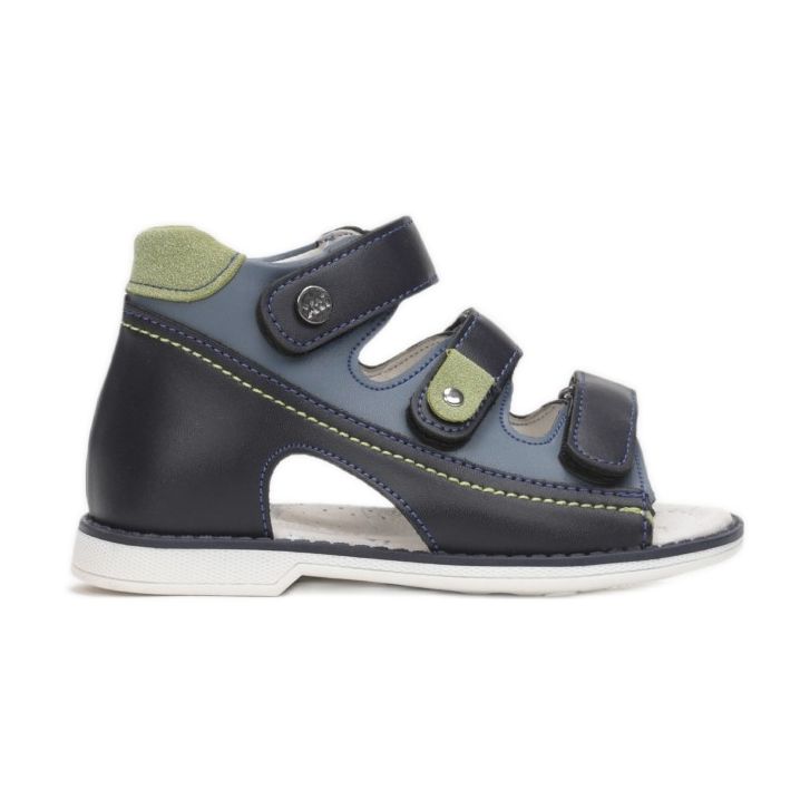 Edessä on kolme tarranauhalla kiinnitettävää hihnaa, jotka helpottavat kenkien pukemista ja säätämistä lapsen jalkaan sopivaksi. Koristeompeleet antavat sandaaleille ainutlaatuisen luonteen, ja avoin, pyöreä kärki antaa jalkojen hengittää lämpiminä päivinä.