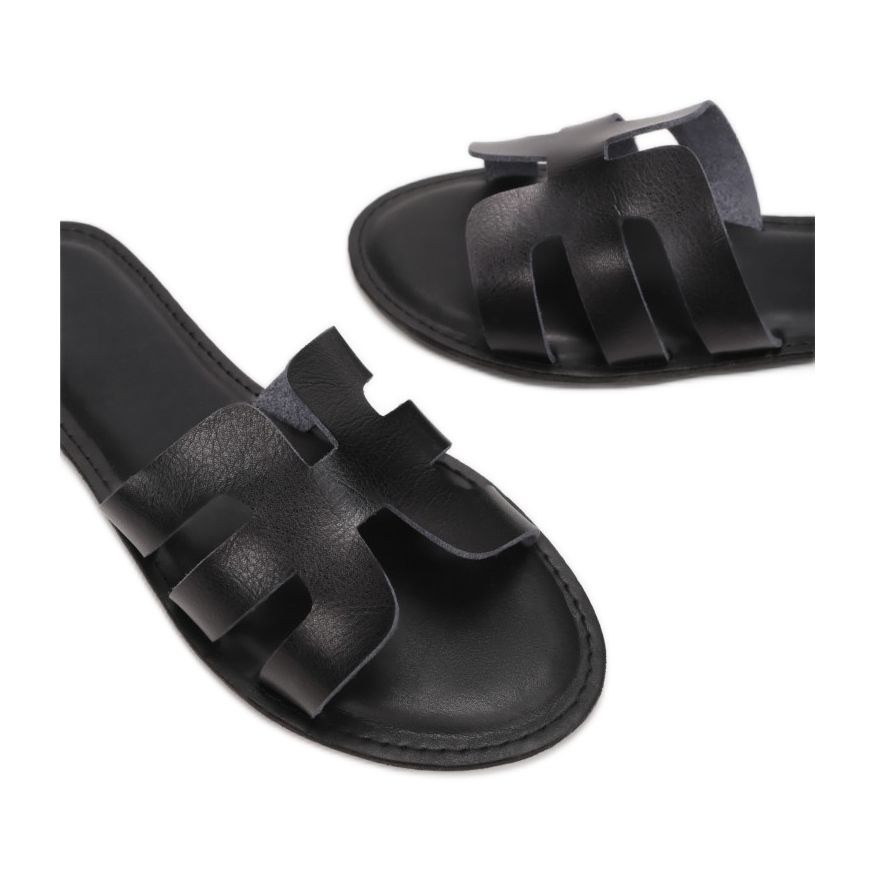 Vices CM-55-97-38 varvastossut tyylikkäässä mustassa värissä ovat täydellinen valinta naisille, jotka arvostavat mukavuutta ja tyyliä joka päivä. Nämä slip-on liukumäet erottuvat litteästä pohjasta ja leveästä hihnasta, joka tukee tehokkaasti jalkaa. Vyön geometriset, syvät leikkaukset antavat niille modernia luonnetta, ja metallisen eko-nahan viimeistely erottuu muista malleista.