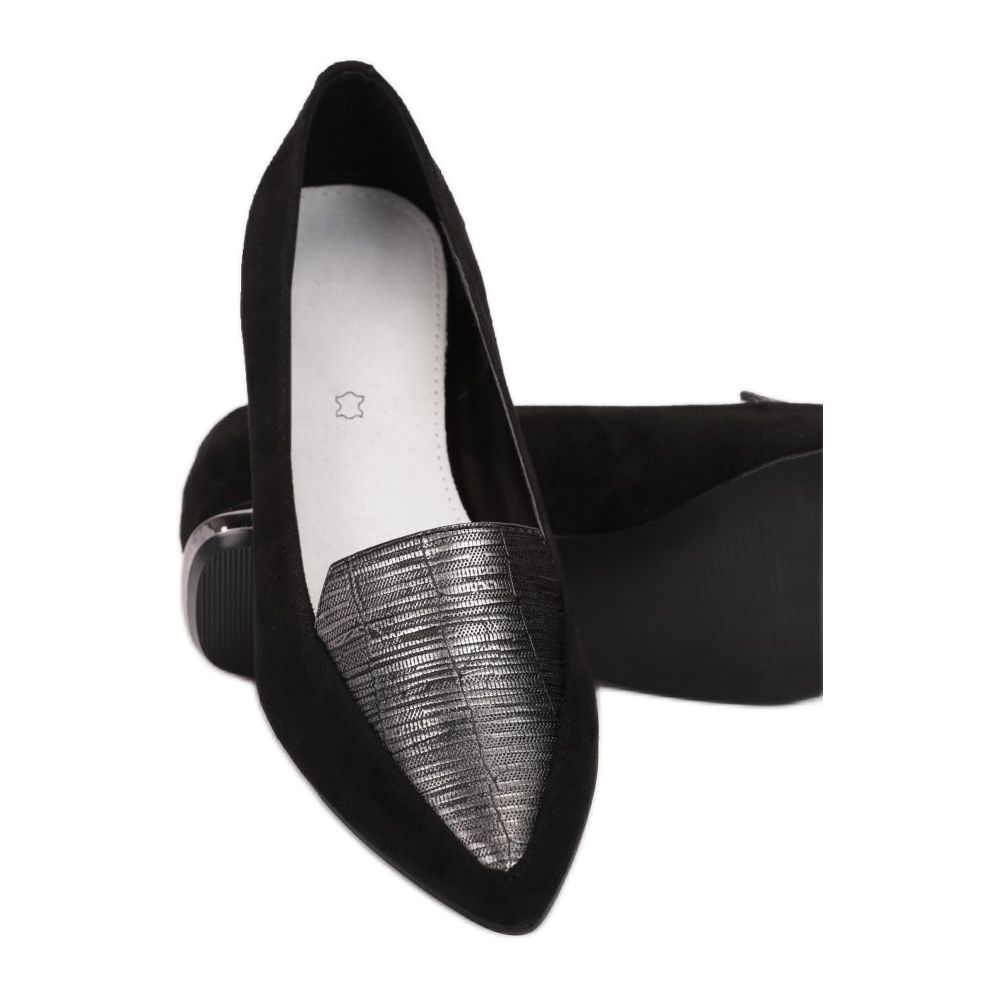 Löydä eleganssia ja mukavuutta mustilla Vices FL354A -pumpuilla. Näissä slip-on kengissä yhdistyvät moderni muotoilu ja toimivuus, mikä tekee niistä täydellisen valinnan erilaisiin tilaisuuksiin. Epäsäännöllisen, matalan, 2 cm korkean kantapään päällä ne tarjoavat erinomaisen vakauden, samalla kun ne tarjoavat ohuen, terävän varpaan, joka lisää eleganssia koko tyyliin.