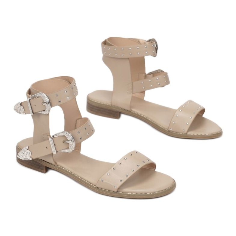 Sandaalien muotoilu ilahduttaa varpaissa ja nilkassa leveillä olkaimet, jotka on koristeltu niiteillä ja näyttävillä soljeilla, jotka antavat niille tyylikkään lopputuloksen. Valmistettu laadukkaasta ekonahasta, sekä päällinen että pohjallinen takaavat kestävyyden ja helpon hoidon, mikä tekee niistä käytännöllisen ratkaisun jokapäiväiseen käyttöön.