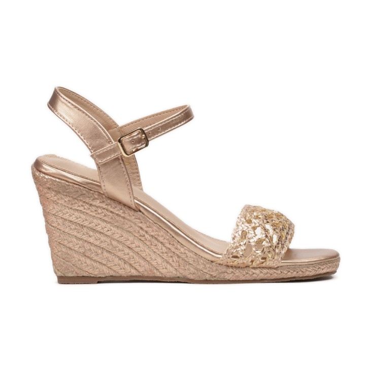 Samppanjanväriset Vices LEE065-449 sandaalit ovat ihanteellinen valinta tyyliä ja mukavuutta arvostaville naisille. Nämä tyylikkäät kengät on asetettu 9 senttimetrin kiilalle ja niissä on 2 senttimetrin alusta, joka takaa käyttömukavuuden myös pitkäksi aikaa.
