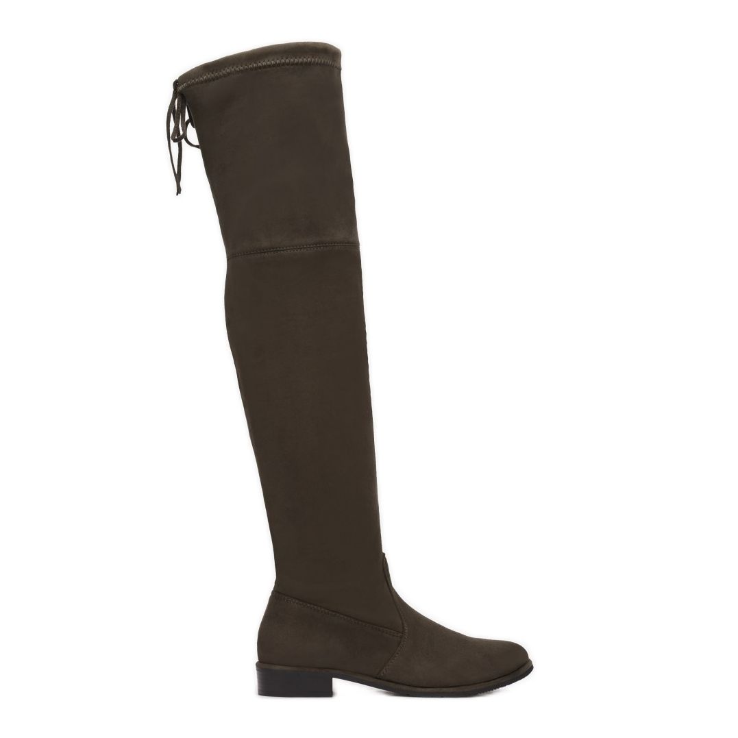 Löydä eleganssia ja mukavuutta vihreillä Vices T060-61 -saappaat. Nämä korkealaatuisesta ekologisesta mokkasta valmistetut litteät polven yli ulottuvat saappaat ovat täydellinen ratkaisu syyspäiviin. Säädettävän päällisen ansiosta voit säätää ne figuurillesi sopivaksi, mikä tekee niistä paitsi tyylikkäitä myös toimivia.