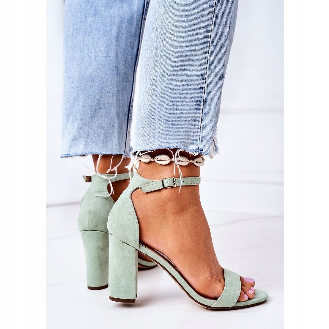 Laadukkaasta ekologisesta mokkanahkasta valmistetut sandaalit näyttävät erittäin tyylikkäiltä ja niiden intensiivinen vihreä väri lisää luonnetta mihin tahansa tyyliin. Pehmeä ekonahkapohjallinen ja huolellisesti suunniteltu 9 cm korkea tolppa takaavat käyttömukavuuden, joten voit nauttia pitkistä tunteista jaloissasi väsymättä.