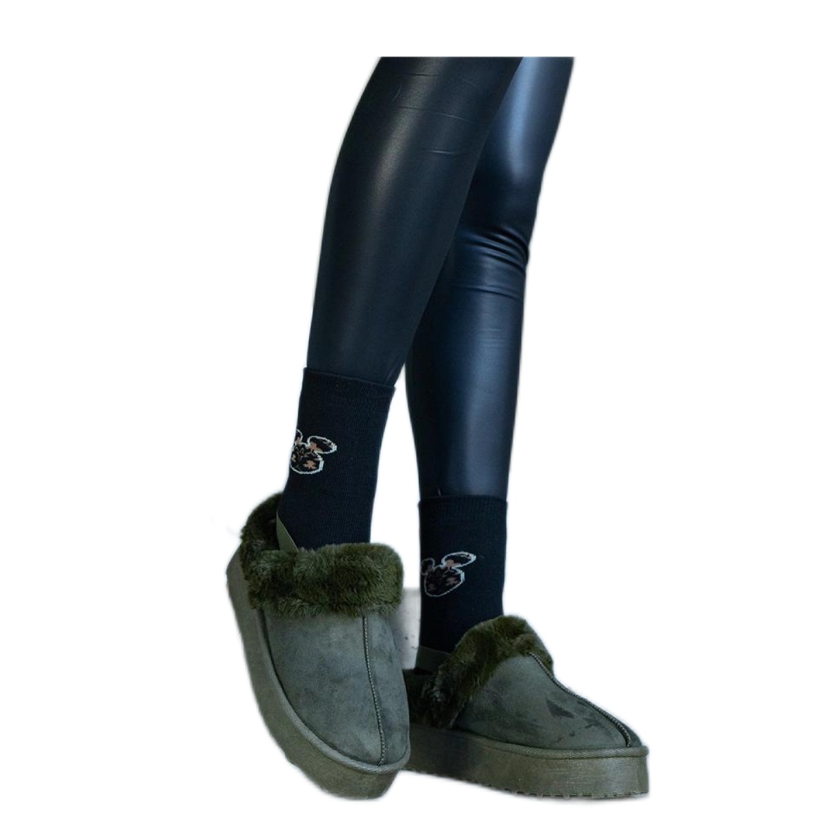 Vihreät tossut turkista koristeltu ja elastisella nauhalla kantapäällä on ihanteellinen ehdotus talvipäiville, joka yhdistää toiminnallisuuden lisäksi myös muodikkaan ilmeen. Ainutlaatuisen suunnittelun ansiosta, jolla on pyöreä nenä ja käytännöllinen elastinen nauha kantapäässä, nämä tossut takaavat mukavuuden joka vaiheessa.