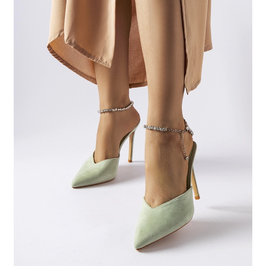 Yksityiskohdat: Vihreät claude-korkokengät varvastossut strassit
