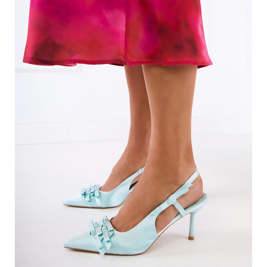 Vihreät pumput nastalla, jossa on jouset, ovat välttämättömiä jokaisen modernin naisen vaatekaappissa. Heidän tyylikäs leikkaus ja ainutlaatuinen mintun sävy tekevät niistä täydellisen täydennyksen sekä iltamatkoihin että muodollisiin kokouksiin.