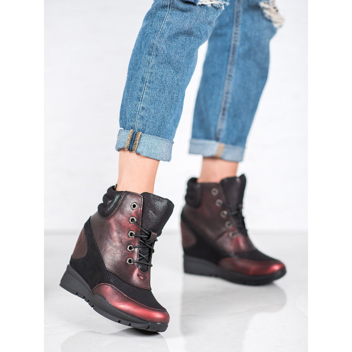 Sergio Leonen viininpunaiset tennarit ovat täydellinen valinta naisille, jotka etsivät tyylikkäitä ja mukavia arkijalkineita. Laadukkaasta kankaasta ja ekologisesta nahasta valmistetut kengät yhdistävät eleganssia ja toimivuutta. Ainutlaatuisen värinsä ja muodikkaan leikkauksensa ansiosta lenkkarit täydentävät erinomaisesti rentoa tyyliä ja antavat niille erottuvan reunan.