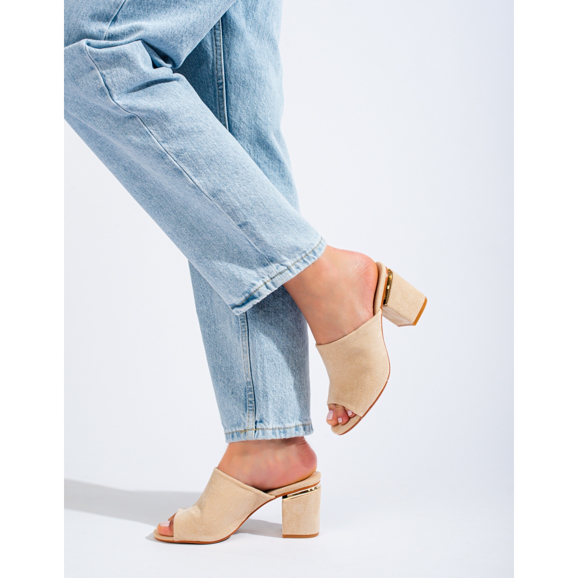 Yksityiskohdat: Vinceza beige-muulit pylväässä