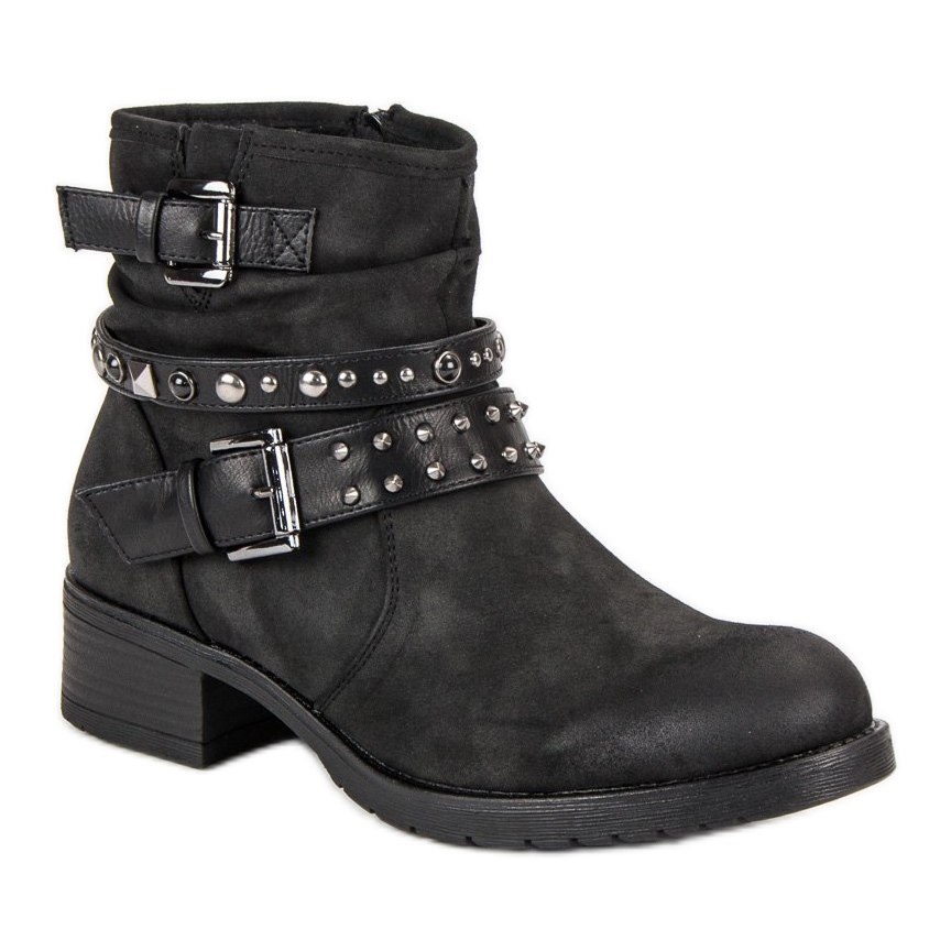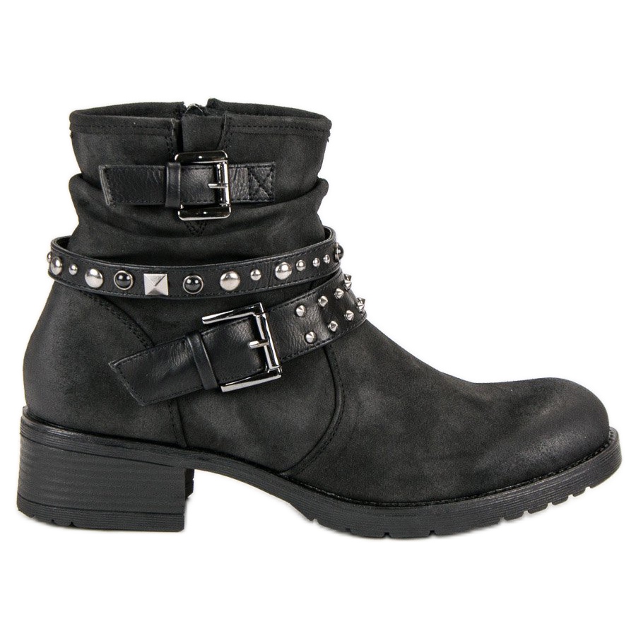 VINCEZA mustatyöläiset ovat täydellinen valinta jokaiselle rohkealle naiselle, joka haluaa erottua joukosta. Nämä tyylikkäät saappaat, jotka on valmistettu korkealaatuisesta ekologisesta nahasta, yhdistävät eleganssin muodikkaan muotoilun kanssa. Niiden tyypilliset koristeelliset soljet ja yksityiskohdat strassien ja nasttojen muodossa antavat niille rockin, ainutlaatuisen luonteen, joka sopii täydellisesti rentoon tyyliin.