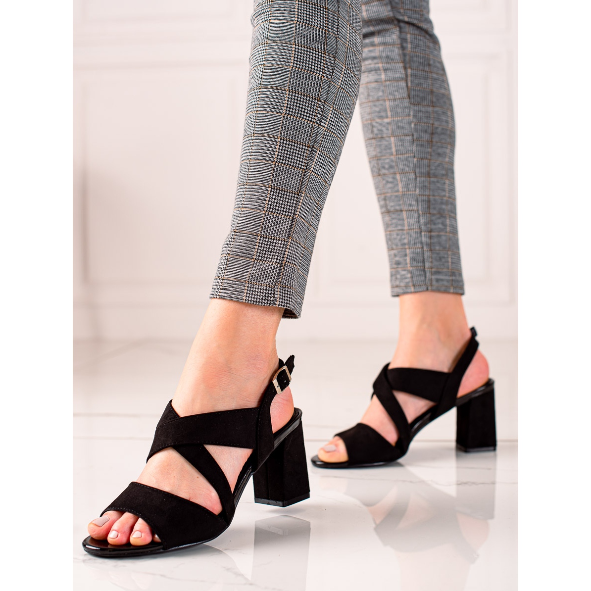 Sileästä muovista valmistettu pohja takaa kestävyyden ja käyttömukavuuden, ja solki helpottaa kenkien pukemista ja riisumista. Klassisen mustan värin ja minimalistisen muotoilun ansiosta VINCEZA-sandaalit sopivat täydellisesti erilaisiin tyyleihin, sekä tyylikkäisiin mekkoihin että arkisempiin asuihin.