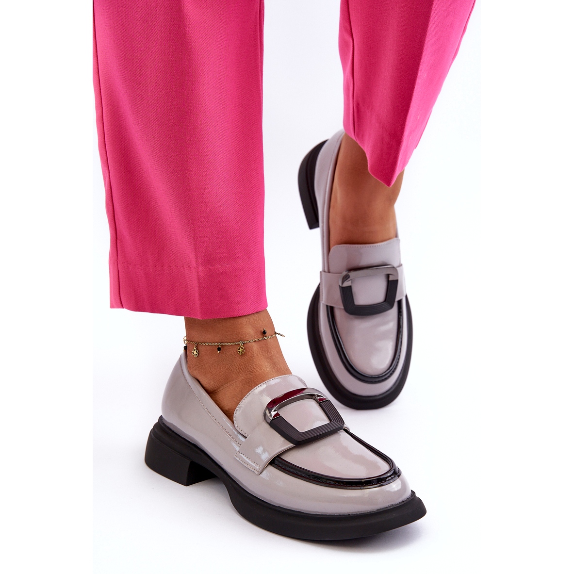 Yksityiskohdat: Vinceza naisten kiiltonahkaiset mokasiinit, harmaa