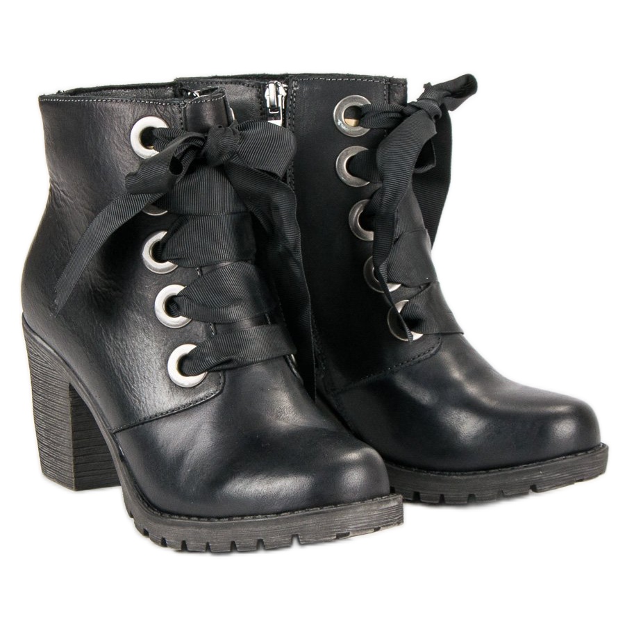 Esittelemme VINCEZA Lace Up Leather -nilkkurit tyylikkäässä mustassa värissä - täydellinen valinta syys- ja talvikauteen. Näissä arki-saappaissa yhdistyvät tyyli ja mukavuus vahvan 8 cm:n korkokenkän ja paksun kulutuspinnan ansiosta, joka tarjoaa erinomaisen pidon eri pinnoilla.