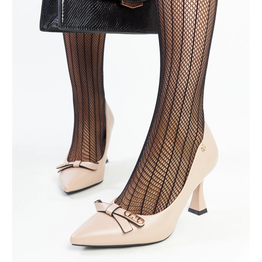 Kantapään korkeus 7,5 cm tekee pumput täydellisen sekä päivittäin että muodollisempiin tilanteisiin. Valmistettu korkealaatuisista materiaaleista, mukaan lukien ekologinen nahka ja insertin luonnonahka, varmistavat mukavuuden koko päivän. Lisämaku on viehättävä keula, joka korostaa tämän mallin naispuolista luonnetta.