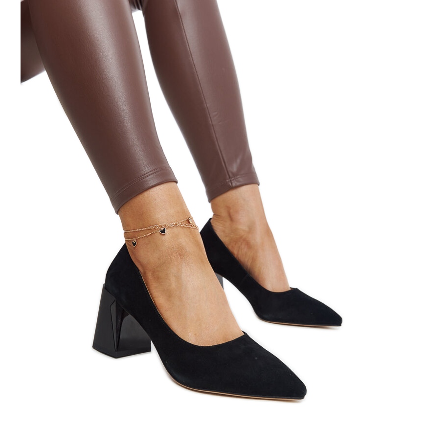 Pumput on valmistettu korkealaatuisesta luonnollisesta mokkanahasta, joka sopii täydellisesti uusimpiin suuntauksiin. Klassiset mustat värit tekevät niistä vastaamaan monia tyylejä, tyylikkäistä mekkoista satunnaisiin sarjoihin farkut. Lisäksi nahkainen lisäys takaa mukavuuden koko päivän, ja kiinteä muovinen pohja varmistaa kestävyyden ja hyvän tarttuvuuden.