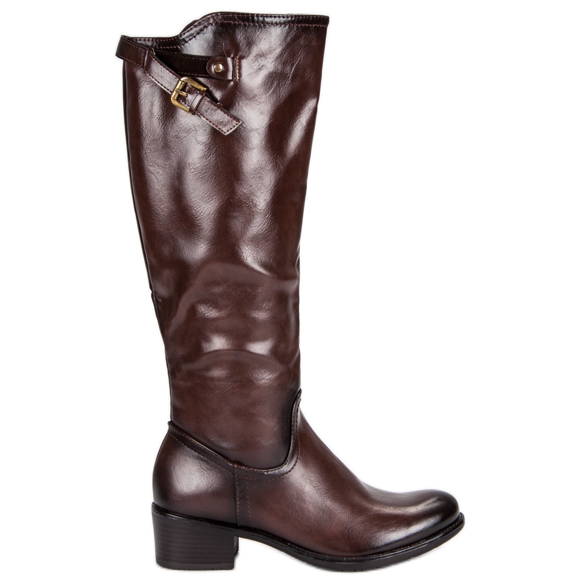 Ruskeat VINCEZA-saappaat ovat täydellinen valinta naisille, jotka etsivät tyylin ja mukavuuden yhdistelmää. Korkealaatuisesta ekonahasta valmistetut tummanruskeat saappaat ovat täydellinen valinta syksyyn ja talveen. Kenkäpeitteen eristyksen ansiosta ne tarjoavat lämpömukavuutta ja pitävät sinut lämpimänä kylminä päivinä.