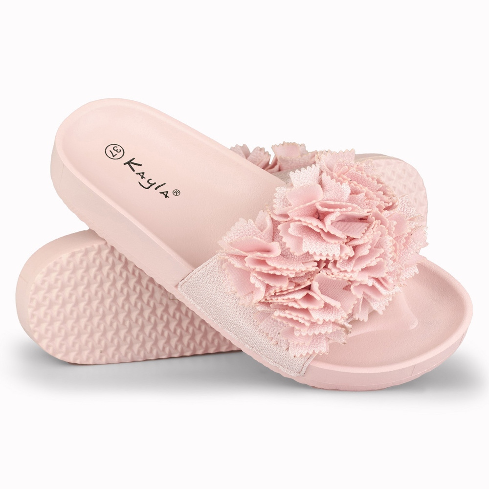 Yksityiskohdat: Violett naisten vaaleanpunaiset kukalliset tossut vaaleanpunainen