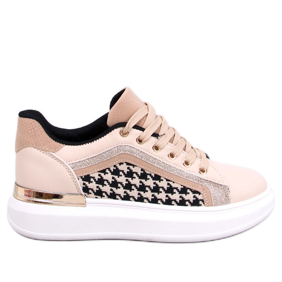 Tässä ovat Volyne Beige naisten houndstooth-lenkkarit, jotka kiinnittävät varmasti kaikkien huomion! Näissä nauhoitettavissa urheilukengissä, joissa on korkea pohja, yhdistyy klassinen muotoilu ja viimeisimmät trendit. Koiranhammaskuvio sekä glitterien ja metallisten lisäosien yhdistelmä tekevät niistä todellisen välttämättömän jokaisen vaatekaapin.
