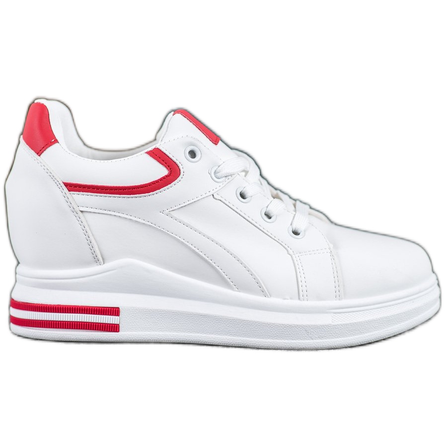 Etsitkö täydellistä yhdistelmää urheilullista tyyliä ja mukavuutta? Nämä ovat Loveryn Wedge Sneakers -lenkkarit, jotka ilahduttavat paitsi muotoilullaan, myös toimivuudellaan. Nämä kengät on valmistettu korkealaatuisesta keinonahasta muodikkaassa valkoisessa värissä punaisilla sovelluksilla. Nämä kengät ovat erinomainen valinta modernille naiselle, joka haluaa tuntea olonsa muodikkaaksi joka päivä.