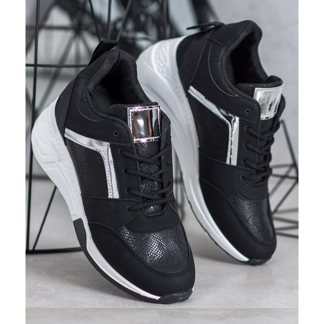 Löydä ainutlaatuiset kiilalenkkarit SHELOVET-brändiltä, jotka ovat täydellinen yhdistelmä tyyliä ja mukavuutta. Elegantin musta värinsä ansiosta ne sopivat täydellisesti uusimpiin trendeihin ja ovat samalla universaali elementti jokaiseen vaatekaappiin. Matalan, mutta vakaan 8,5 cm:n kiilan ansiosta nämä kengät takaavat vakauden ja mukavuuden koko päivän.