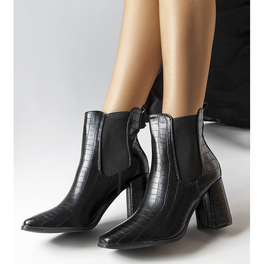 Mustat Weigall-nilkkurit ovat täydellinen valinta naisille, jotka haluavat yhdistää eleganssin muodikkaan tyyliin. Valmistettu korkealaatuisesta ekologisesta nahasta, jota on rikastettu krokotiilin ihon jäljitelmällä, ne herättävät huomion omaperäisellä ulkonäöllä, joka lisää luonnetta mihin tahansa tyyliin. Malli L08-239 erottuu neliömäisestä kärjestä ja vakaasta 9 cm korkeasta lohkokorosta, mikä takaa käyttömukavuuden ja hyvän vakauden.