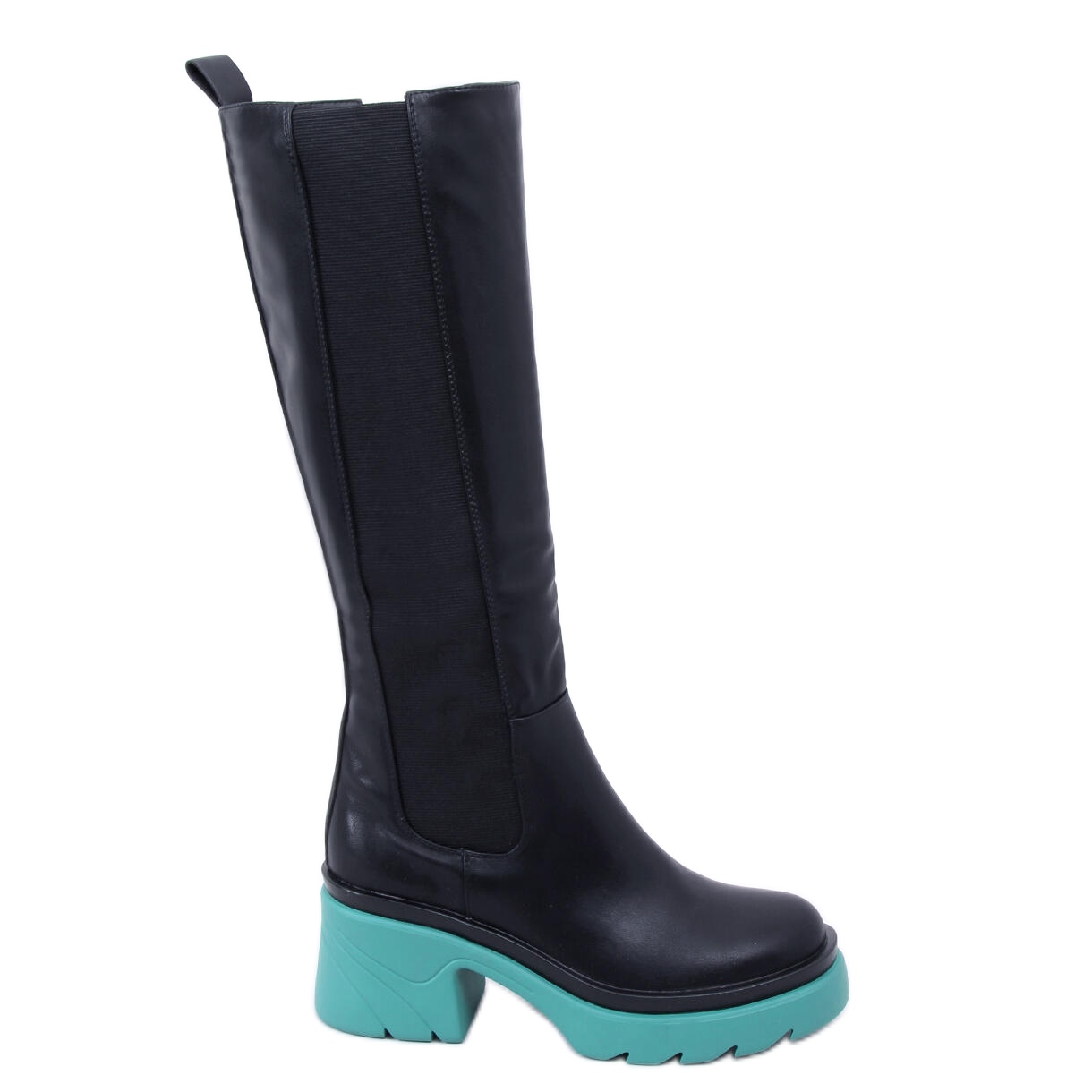 Pohjan alkuperäiseen väriin kannattaa kiinnittää huomiota - energinen vihreä aksentti erottaa tämän mallin muista ja antaa sille ainutlaatuisen luonteen. Pyöreän kärjen ansiosta saappaat sopivat täydellisesti jalkaan eikä aiheuta painetta, ja korkea polvipituinen päällinen lisää tyyliä.