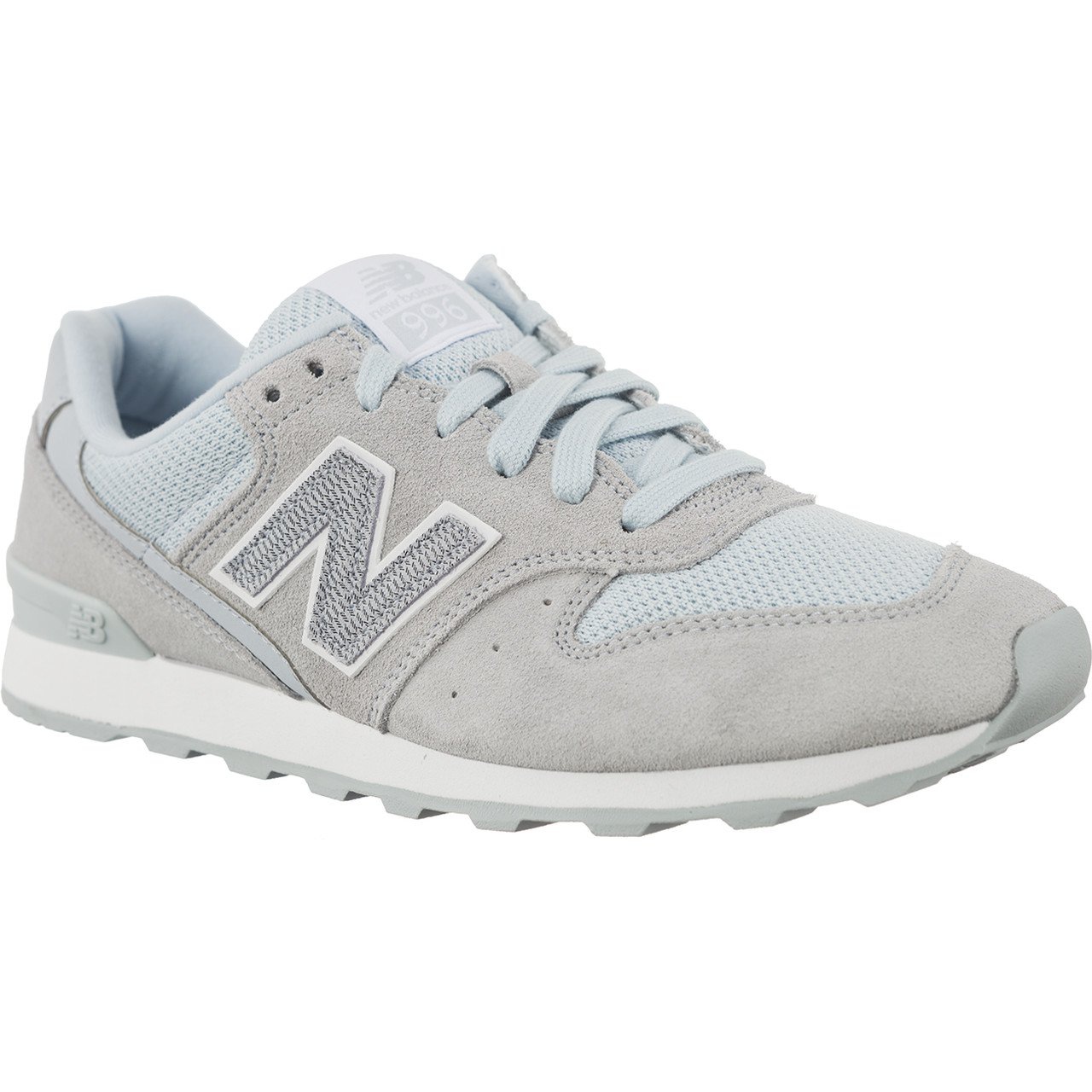 Ajaton muotoilu 996-sarjasta, joka tunnettiin vuodesta 1989, moderni Vaalean posliinisininen ja valkoinen -versio. Hienovarainen, harmaansininen sävy, jossa on siistejä valkoisia aksentteja, tekee kengistä helppo sovittaa jokapäiväiseen tyyliin.