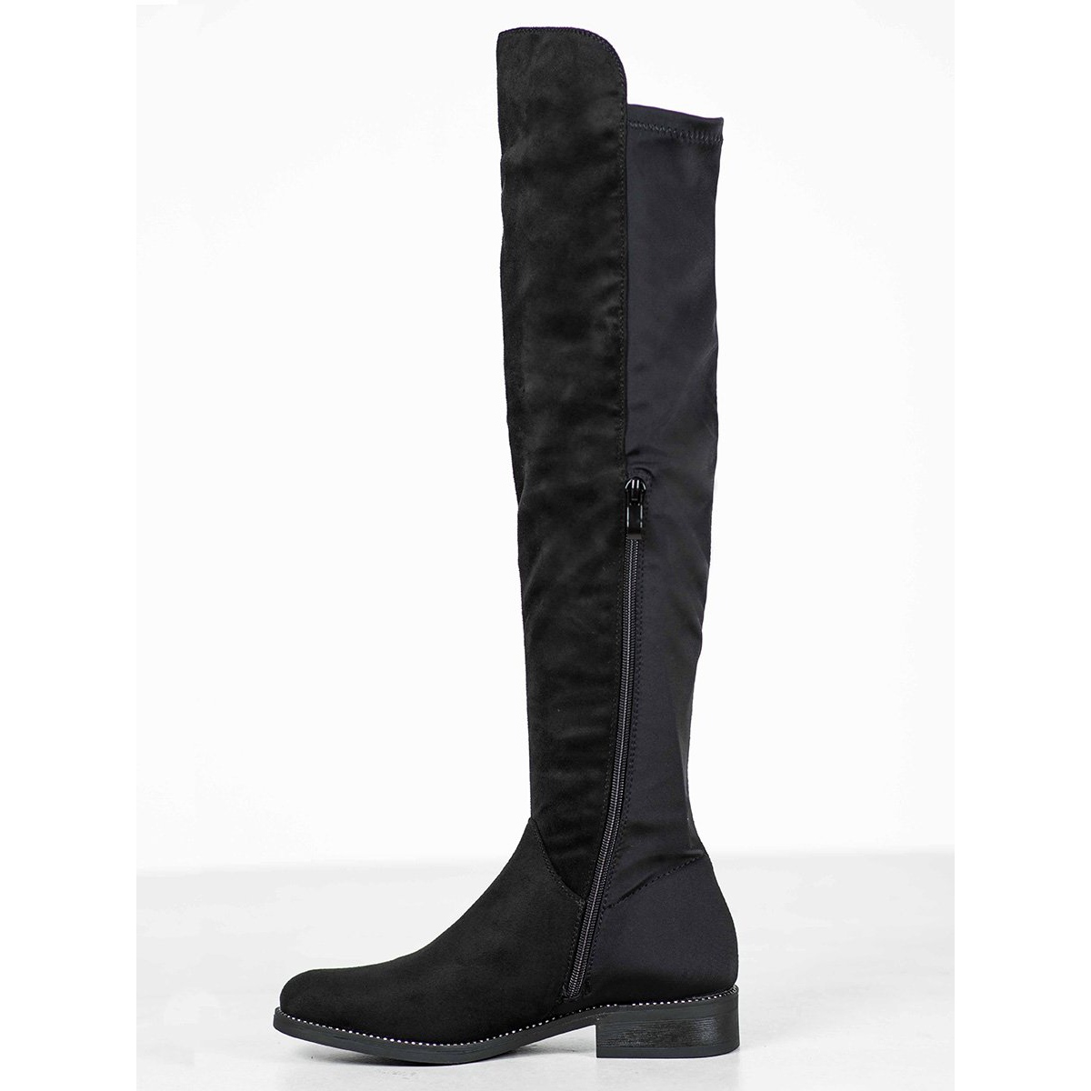 Sisäänrakennettu, pehmeä lukko ja pyöreä kärki takaavat käyttömukavuuden myös kylmimpinä päivinä sisäpuolen eristyksen ansiosta. Polven yläpuolelle ulottuva korkea päällinen korostaa figuuria ja lisää naisellisuutta, ja litteä 3 cm kantapää tekee kengistä vakaat ja käytännölliset.