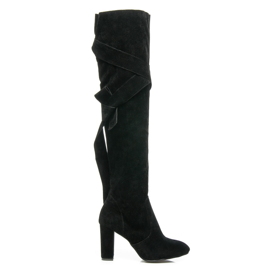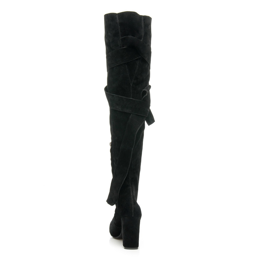 Löydä vertaansa vailla oleva yhdistelmä eleganssia ja mukavuutta Vices-muskettisotureilla, jotka täydentävät täydellisesti vaatekaappiasi. Nämä seksikkäät mustat saappaat, jotka on valmistettu korkealaatuisesta ekologisesta mokkanahasta, sopivat jalkaan ja korostavat sen kauneutta ja hoikkautta. Tyylikäs sidonta lisää niihin luonnetta, mikä tekee jokaisesta tyylistä erittäin hienostuneen.