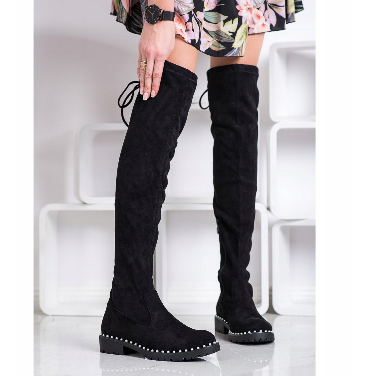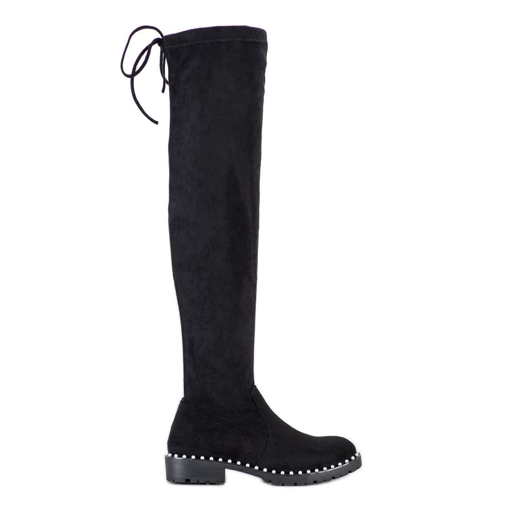 Yksityiskohdat: SHELOVET Ylipolvisaappaat helmillä musta