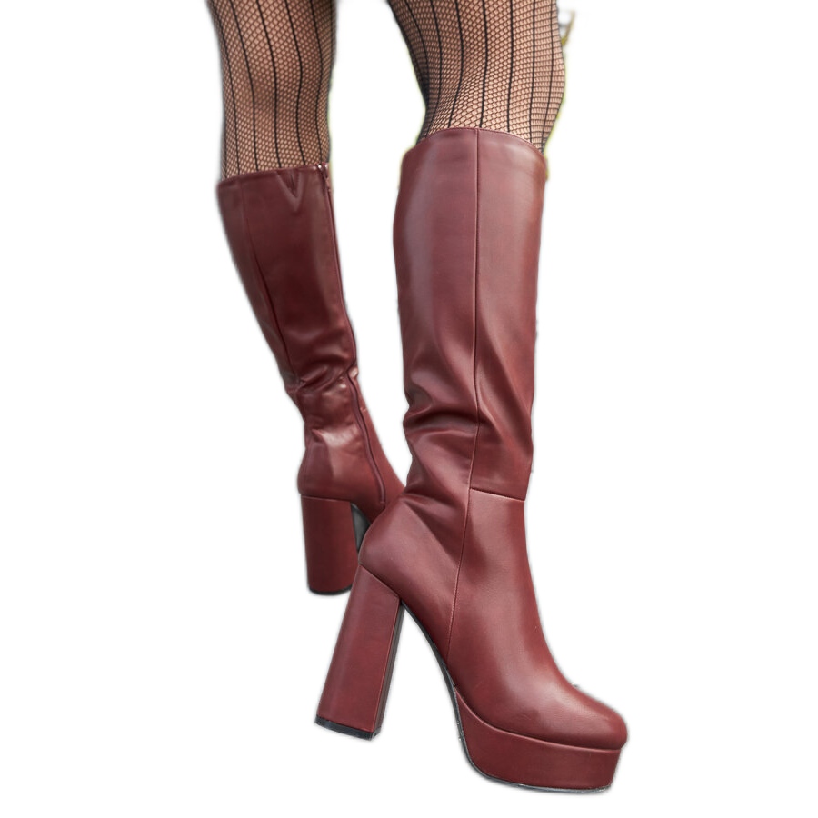 Tyylikkät saappaat, jotka ulottuvat polveen syvällä viinin sävyllä (viininpunainen/punainen). Valmistettu ekologisesta nahasta, jossa on manteli -nenä ja mukava vetoketju - täydellinen syksyn väkivaltaiseen kauteen. 12 cm: n alustan ja baarikantan kytkentä varmistaa vakauden ja lisää kuvaan muutaman senttimetrin luopumatta mukavuudesta.